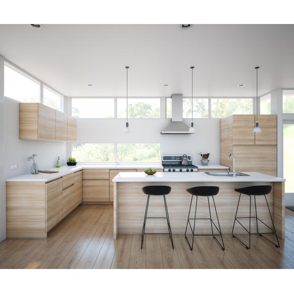 Modern Design Handleless Wood Grain Kitchen Cabinet For Homeowner And Builder Images |