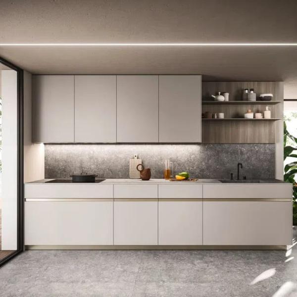 Contemporary Automatic Folding Particle Board Wood Storage Kitchen Cabinet With Soft Closing Drawers Cupboard Images |